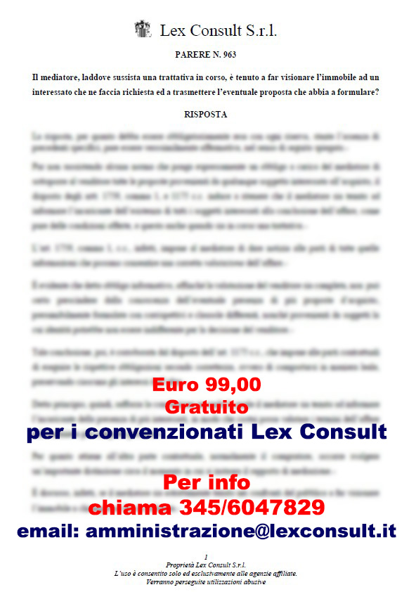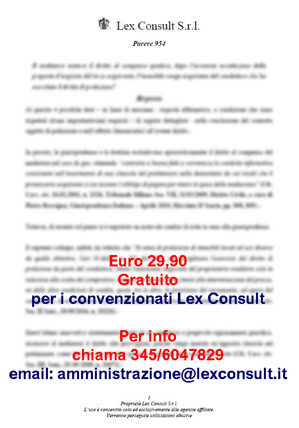 La risposta, per quanto debba essere obbligatoriamente resa con ogni riserva, stante l’assenza di precedenti specifici, pare essere verosimilmente affermativa, nel senso di seguito spiegato.- Pur non sussistendo alcuna norma che ponga espressamente un obbligo a carico del mediatore di sottoporre al venditore tutte le proposte provenienti da qualunque soggetto interessato......€ 99,00 -